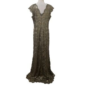 Tadashi Shoji Bronze Sequin Lace Evening Gown 16 Taupe Cap Sleeve Formal Dress