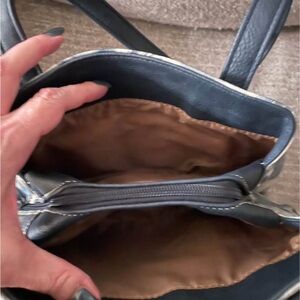 Stylish shoulder bag with a chic floral design in black and gray. Perfect for adding elegance to any outfit.