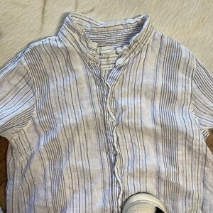 Garnet Hill Easy Linen Button-Down Shirt, featuring a striped pattern