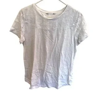 1 No tags, white short sleeve tee Size S/M with lace design on sleeves and neckline. Approx. 23" long/ Pit to pit 19" round neckline