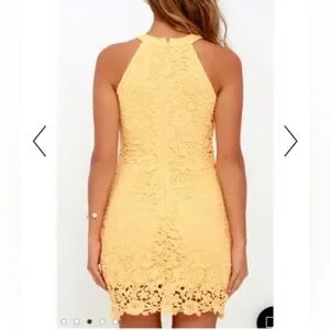 Lulus Love Poem Yellow Crochet Lace Mini Dress