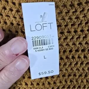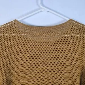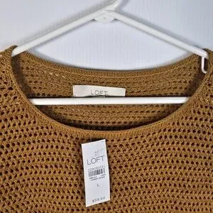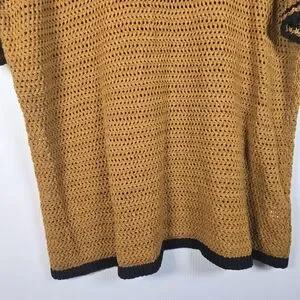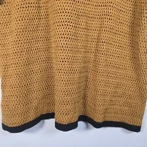 NWT Loft Women's Mustard Crochet Top with Black Trim Size L Ruffled Sleeve. Elevate your style with this chic mustard crochet top featuring elegant black trim. Perfect for any occasion, this top combines comfort and fashion effortlessly.