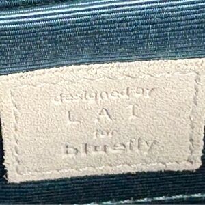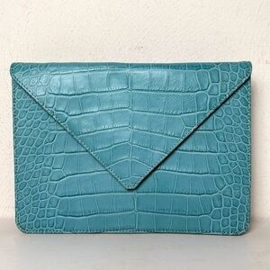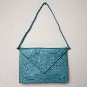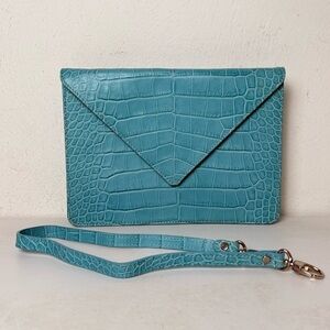 LAT for Bluefly Cerulean Croc Embossed Genuine Leather Convertible Clutch Purse