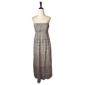 Anthropologie Edme & Esyllte Dress Women 0 Ivory Brown Strapless Hypnotic Maxi