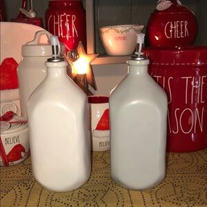 Rae Dunn OIL & VINEGAR Cruet Set (Large White & Gray)