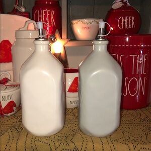 Rae Dunn OIL & VINEGAR Cruet Set (Large White & Gray). New and never used. I had taken out of the package box it came in. The price tag was on the box. OIL is all white and VINEGAR is all gray. See all pics for full description. #RaeDunn #Cruets #Oil&Vinegar #FarmHouse #Dinner