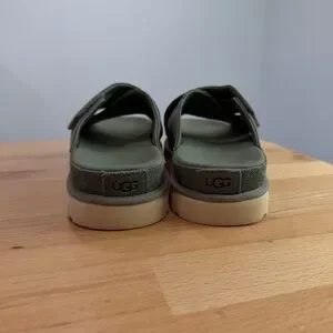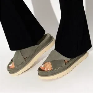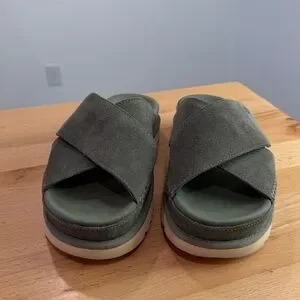 UGG Goldenstar Cross Slide Suede Minimalist Platform Sandal Green Size 7.5
