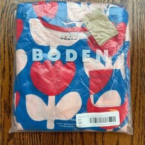 New with tags - in packaging but packaging opened to take listing photos. Vibrant blue bold floral print featuring tulips. Cute lil patch pocket on chest.