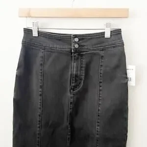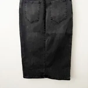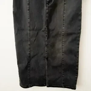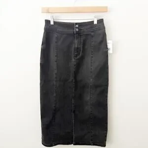 FREE PEOPLE | Maddie Denim Midi Skirt Front Slit Black Jean Pencil | 28, 6