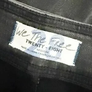 Great black denim jean miniskirt from FREE PEOPLE! Size 28, which converts to about a US size 6. Wash is called "black as night". Longer pencil style skirt with front slit. Black stretch denim.