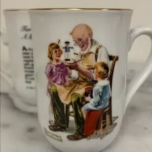 Charming Norman Rockwell mugs with delightful illustrations. Perfect for adding nostalgia to your table.