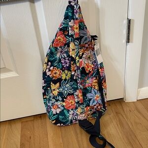 Bright floral design with multiple pockets. Stylish and functional. Never used, New With Tags