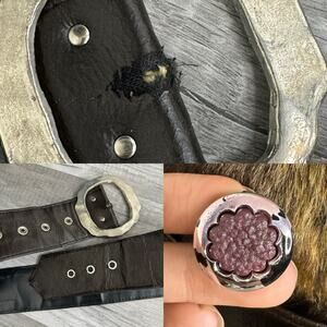 Some areas of the liner have been repaired. It may have some other small holes in liner that we missed. Light wear shows on the exterior. Buttons have missing finish and belt is damage. The button hole and a spot on the front has been repaired. Please see photos. may have a few other small not noticeable