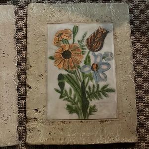 Shabby Chic rustic stoneware floral wall artwork