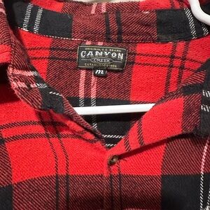 Stay stylish with the red and black plaid shirt. Perfect for casual outings, this shirt offers comfort and a classic look. In great shape