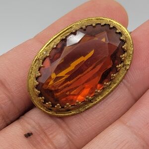 Antique Victorian With Genuine Citrine in Gold Plated Brass Brooch Pin C-Clasp