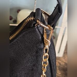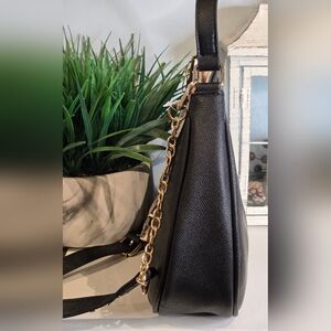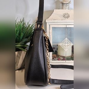 Elegant and classy, this black hobo bag with gold tone Bebe logo is certainly an eye catching piece!