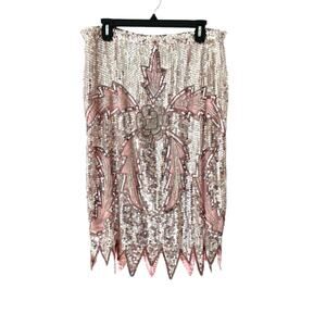 Vintage Maharaj By Cotton Candy Pink Silver Sequin Midi Skirt size large