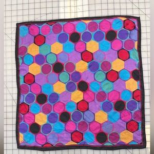 Mod geo polkadot printed scarf. Small stain per photo 18” x 18”