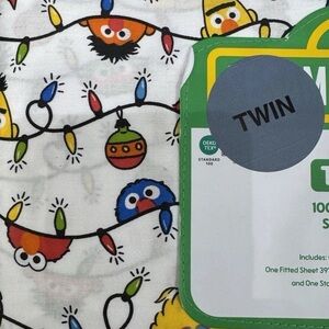 NEW Sesame Street Christmas Lights TWIN 3pc Sheet Set, Elmo Cookie Monster