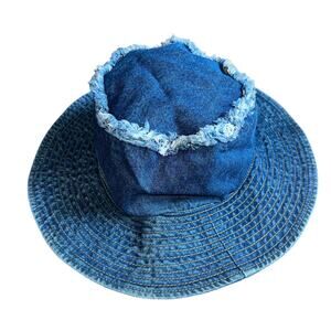 Vintage Denim Blue Jean Fringe Bucket Hat 90’s Y2K