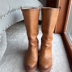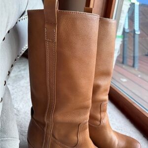 In excellent condition. Leather is so soft and comfortable! Fits true to size.