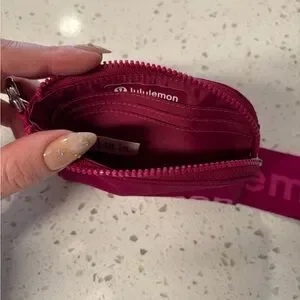 Compact fuchsia keychain holder. Features secure zipper and durable strap. Ideal for keys and cards.