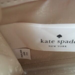 This elegant Kate Spade wallet features a vibrant pink exterior complemented by a cream interior, offering a chic and functional design. Its structured layout ensures easy organization, making it a perfect accessory for any occasion.