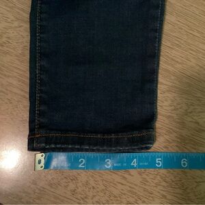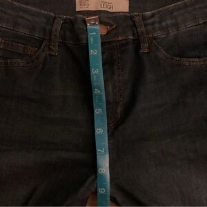 These are an excellent used condition Topshop Moto Leigh jeans in a size 26 or approximate size 2. They are in excellent used condition in a dark indigo wash. The jeans are made of 89% cotton, 8% polyester, and 3% elastane. They are also a skinny fit jeans.