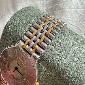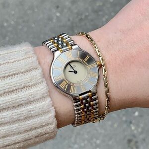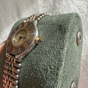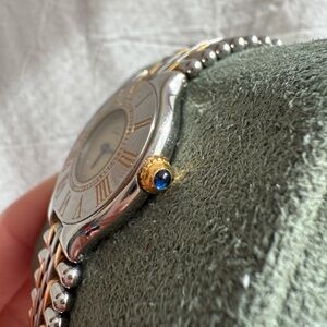 Cartier watch, Roman Bezel, Ivory Dial, bullet strap, Must de Cartier