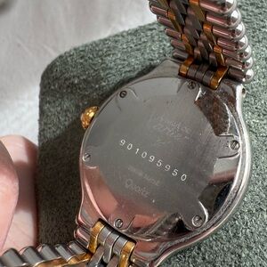 Fits a 5.5-6” wrist. Photos are of actual watch, all taken within last 2-3 months. Crown damaged in photos, but has since been replaced with a Cartier crown and sapphire stone! Last photo shows a bit better!