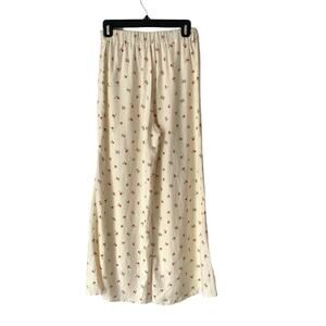Feather Bone Anthropologie Cream Cherry Print Wide Leg Pants size 0