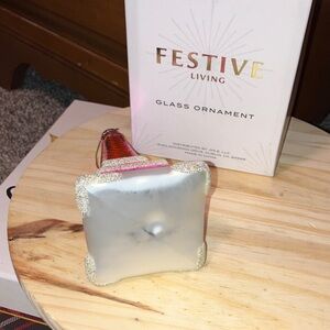 Hand Blown Glass Pink & Silver Eiffel Tower Ornament 5” New