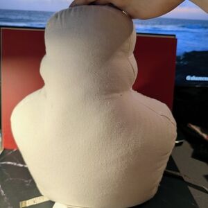 Chic beaded pillow in the shape of a perfume bottle. Features pink, red, and gold beads. Perfect for a stylish night out. Measures close to 11W x 12.5 T. NWT
