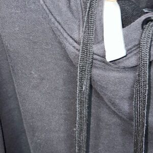 Cozy charcoal hoodie with front pocket. Perfect for layering.