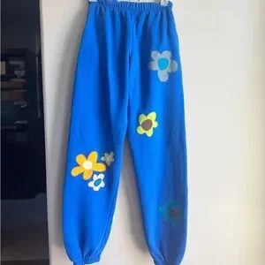 There were purchased from a designer named Kate Sando who hand sews the floral patchwork. I have a sweatshirt from her that I loved but not reaching for these sweatpants. Never worn once.