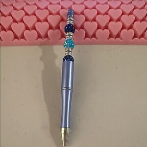Elegant pen with blue and black beads including blue and clear accents . Perfect for adding a touch of style to your writing.