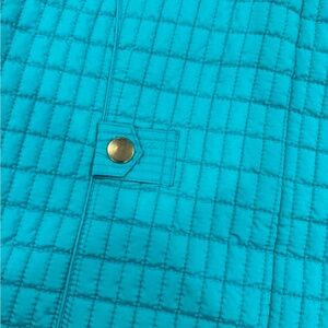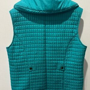 Chic turquoise vest with quilted design. Features zip closure and pockets. Ideal for layering. One small flaw- tiny dark spot in photo