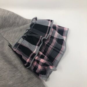 Lily Bleu grey Graphic Tee “you make me smile” plaid ruffle sleeves. Perfect paired with black leggings or jeans. 65% polyester 25% rayon 10% spandex. #0823