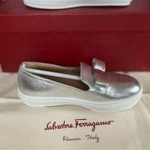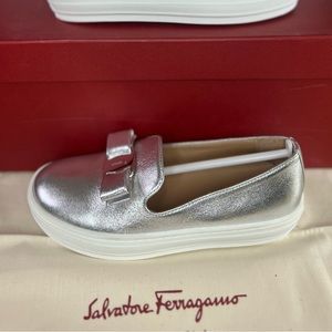 Salvatore Ferragamo Novello Mini Kids Leather Bow Sneakers