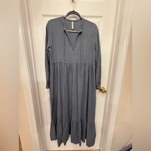 Rachel Pally Finn Linen Blend Blue Maxi Dress Size Small