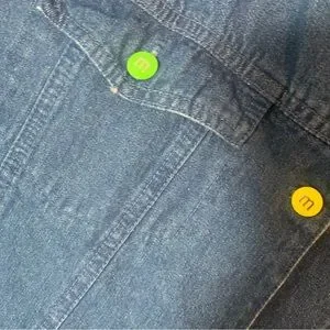 Charming blue denim shirt with playful M&M's design. Features colorful characters and fun embroidery.