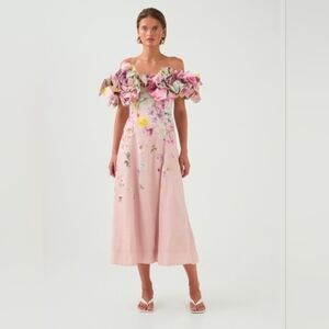 Aje Misha Maxi Dress Floral Maxi Pink 3D Flowers Size 6/US2 Party Weadding