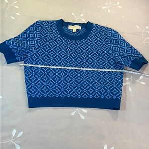 Michael Kors Blue Patterned Woman Medium Casual Crop Sweater Short Sleeves
