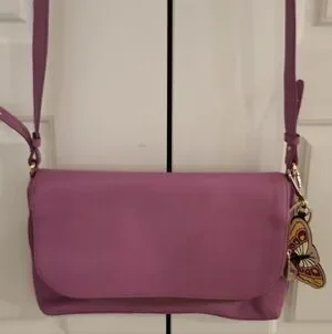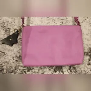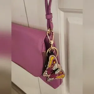 NWOT Furla $448 Pebbled Leather Crossbody Bag Pink Butterfly Bag Charm