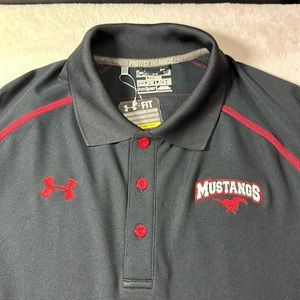 Under Armour Mustangs Mens Polo Black and Red Size Large