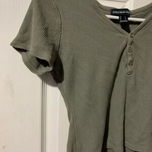 Streetwear Society Waffle Knit Henley Tee – Olive Green