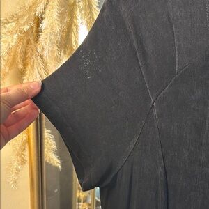 Heavy lightweight stretchy material. This casual black dress is perfect for any occasion. Its sleek design offers a timeless look that is both stylish and versatile.