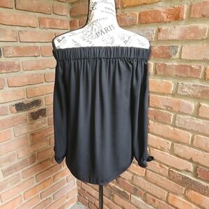 Express Black Off Shoulder Top with Tie Sleeves Size S EUC