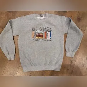 Taylor Swift Taylor’s Version cat / book Gray Crewneck Sweatshirt - small